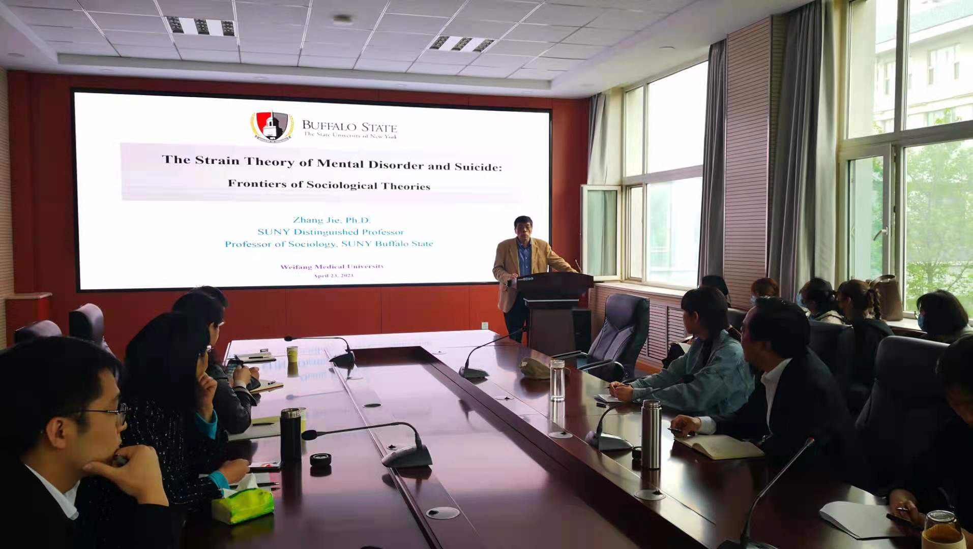 4月23日上午,missav 邀请美国纽约州立大学资深教授,美国纽约州立大学布法罗分校终身教授张杰教授来学校做了题为“The Strain Theory of Mental Disorder and Suicide: Frontiers of Sociological Theories”的学术讲座。