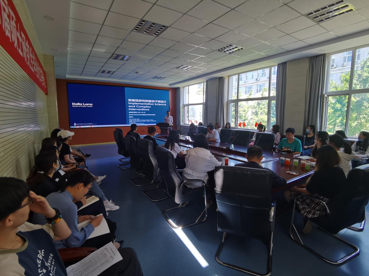 魏教授在科技楼B座205会议室作了题为《实施性研究和复杂干预设计(Implementation Science and Complex Interventions)》的学术报告。魏教授围绕实施性研究和复杂干预设计的理论与方法、如何在基层医院设计降低抗生素滥用的干预措施、如何进行实施性研究和效果评价进行了系统讲解。师生们与魏教授积极互动,魏教授就师生相关学术问题进行了细致的解答。