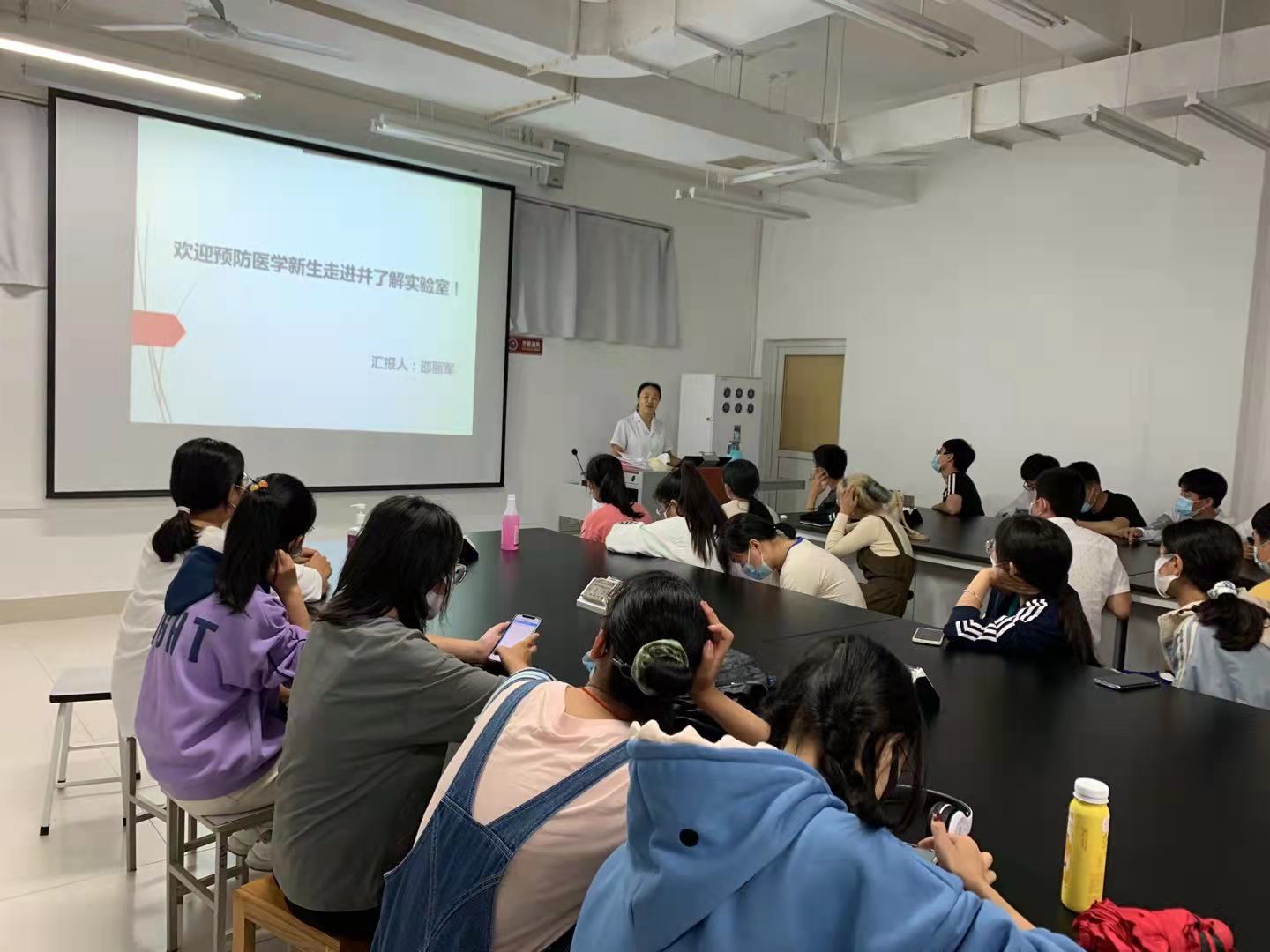 公共卫生与管理实验教学中心副主任邵丽军以讲座的形式向新生讲解了实验中心的发展历程、组织架构、下属实验室分类、主要服务专业、承担课程、开展的各类技能大赛和公共卫生执业医考试相关技能等内容。随后,邵丽军和薛鹏两位老师带领新生先后参观了实验教学中心和公共卫生检测检验中心,并对各实验室基本教学情况和主要仪器设备功能进行了讲解,引导新生感受实验室文化、增强实验室安全意识。通过参观,新生对实验室的布局和功能分区有了初步了解,表示在今后的学习中会努力拼搏,用积极饱满的心态和严谨求实的作风认真学习每一门课程。