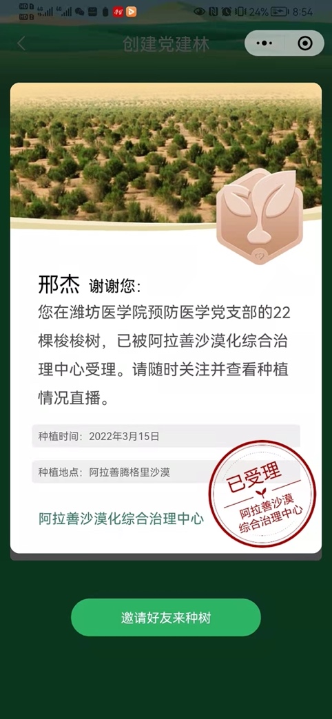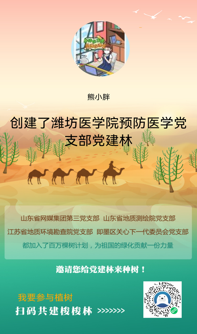 “绿色担当,携手共治沙漠”潍坊医学院预防医学党支部创建党建林,助力云植树