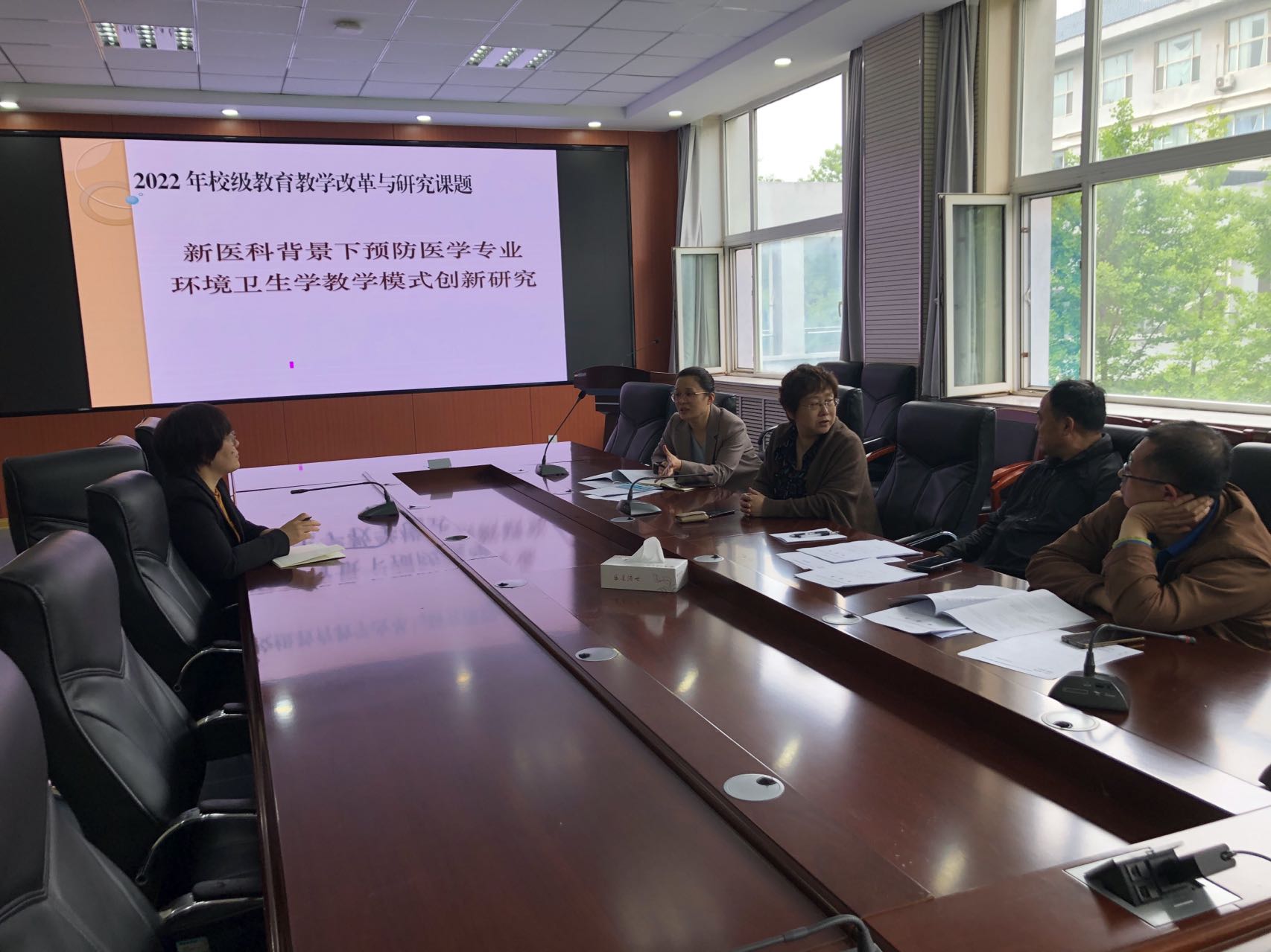 5月13日,missav 在科技楼B205会议室召开了2022年校级教育教学改革与研究课题开题论证会。2022年新立项的3项校级教学改革与研究课题的项目负责人参加了开题,学院组织了4名专家进行了现场指导,会议由公卫学院副院长王春平主持。