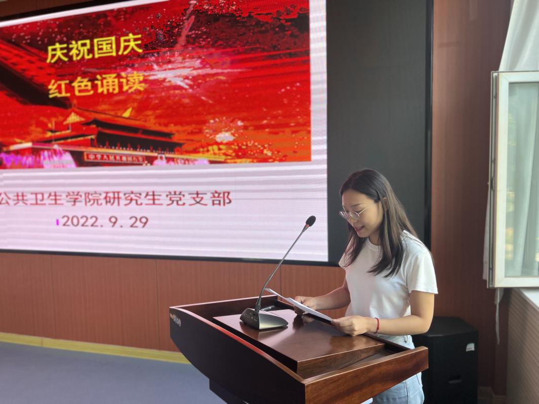 为传承中华文明,培养党员的爱国情怀,重温红色经典篇章,2022年9月29日,missav 研究生党支部开展迎国庆红色诵读主题党日活动。此次主题党日活动从暑期开始筹备,支部党员共提交红色诵读音频44份,经过评委的认真评选推选出8件作品进行现场比赛。