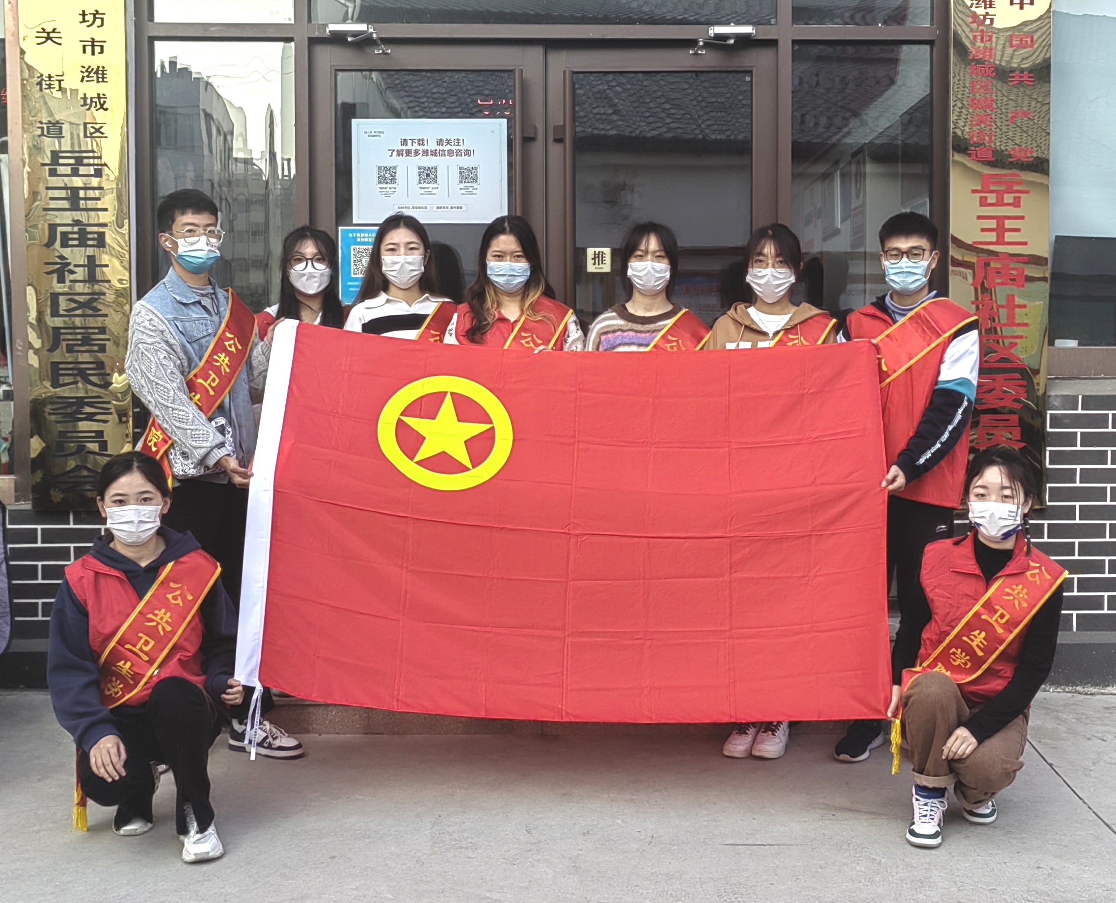 预防医学专业各团支部向奎文区乐道院社区报到,对接开展志愿服务。同学们在社区工作人员的组织下到乐道院·潍县集中营博物馆进行参观,接受红色教育及志愿服务培训,熟悉每个展馆的主题、历史、方位及紧急出口的位置,为后续持续开展红色主题讲解、游客秩序维持等志愿活动奠定良好基础。食品质量与安全、卫生检验与检疫、大数据管理与应用专业各团支部向潍城区岳王庙社区报到并开展志愿服务。同学们在做好个人防护的前提下,对社区中长期不被注意的角落、无人清理的墙角、绿化带内的杂物等进行了清扫,并将遗弃的杂物及垃圾运至相关区域进行分类处理。