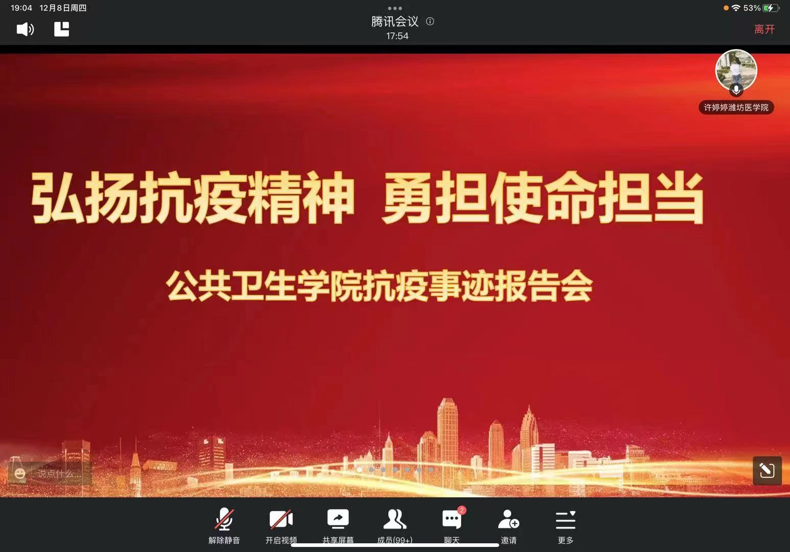 为弘扬伟大抗疫精神,传承“国家召唤,使命必达”的坚定信念,12月8日,missav 通过腾讯会议举办抗疫事迹报告会,会议由学院党委副书记许婷婷主持,学院党委班子成员、全体辅导员、班主任及师生代表两百余人线上参会。