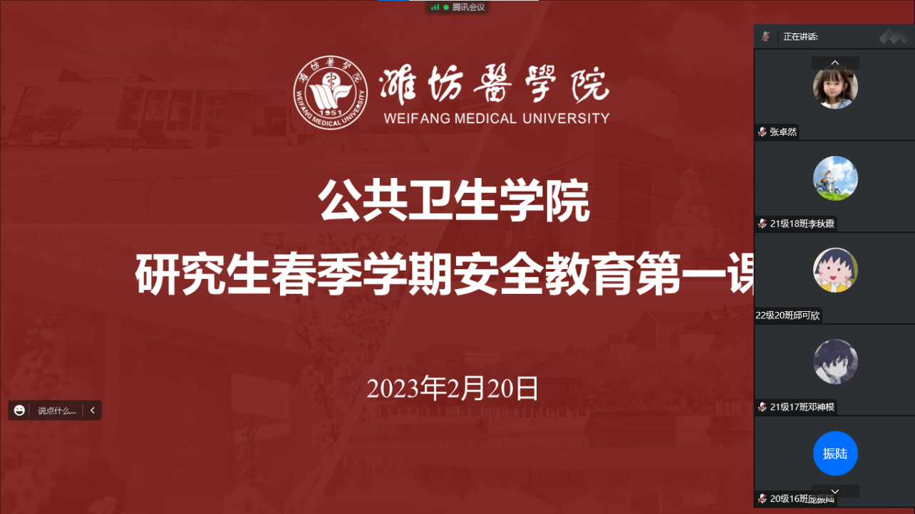为做好研究生返校后的安全教育工作,missav 开展研究生春季学期“安全教育第一课”线上主题班会,研究生辅导员、全体在校研究生参加。