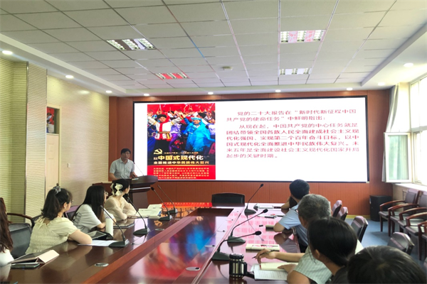 王培承从中国式现代化的实践历程、基本内涵及战略部署等几方面阐述了中国式现代化理论的丰富内涵,他强调,中国式现代化是中国共产党领导的社会主义现代化,是中国共产党和中国人民长期实践探索的成果,是一项涵盖经济、政治、文化、社会、生态和人的全面发展的系统工程,是一项任重道远、意义重大的开创性事业,鼓励当代青年拥有“国之大者”的胸怀,时刻牢记自己的责任与义务,培养高尚品质,努力在新时代背景下创造并实现自己的人生价值。