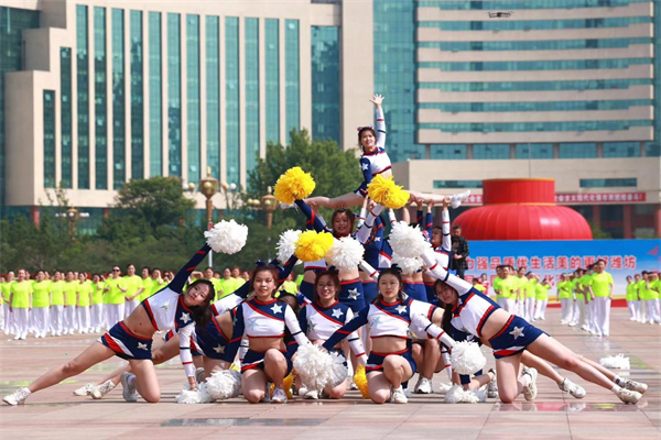 近日,由潍坊市体育局、潍坊市体育总会等单位联合举办2023年潍坊市全民健身月暨潍坊市第十三届全民健身运动会启动仪式在潍坊市人民广场举行,missav 健美操队受邀参加并带来精彩展演。