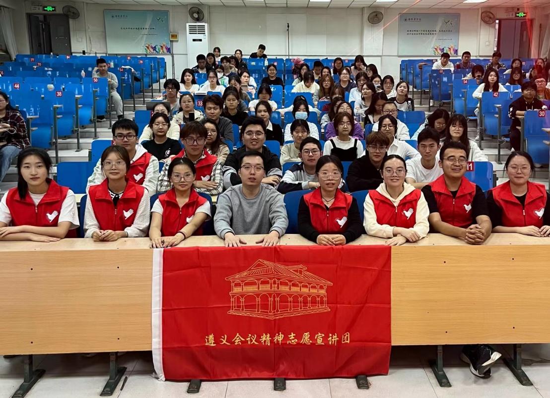 宣讲前,团队在老师的指导下进行培训并制作宣传海报,保证了宣讲的顺利进行。宣讲会上,宣讲团成员通过再叙遵义会议的历史背景,真实描摹风雨如晦下的历史危局,并对“坚定信念、坚持真理、独立自主、团结统一”的遵义会议精神的深刻内涵进行着重宣讲,号召青年们要弘扬遵义会议精神,走好新时代的长征路。通过开展宣讲,让同学们对遵义会议的历史脉络及其精神内涵有了更为深刻的把握,更加坚定自身的理想信念,增强自身的责任感和使命感。