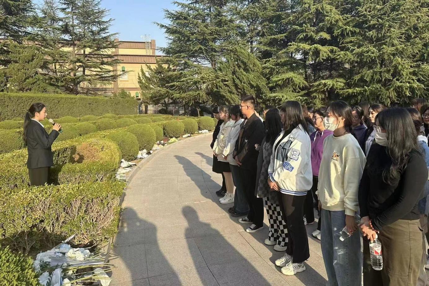 主持人宣布祭扫活动开始后,全体同学立正,奏唱国歌,伴随着庄严的国歌,唤起同学们的爱国情感;毕,全体脱帽向烈士默哀,表达对烈士的崇高敬意和缅怀;接着大家向烈士敬献花篮、花圈,学生党员重温入党誓词,引起了同学们对革命先烈的思念。活动最后,由讲解员带领参观瞻仰烈士墓区,同学们驻足凝视,一同接受守初心、担使命的精神洗礼。学生代表王一迆深情的说:“回顾烈士们的英勇事迹,抒发了自己对烈士的敬畏之心,在以后的生活中,将铭记烈士们的崇高精神,携带着这份力量勇敢前行,为实现中国梦而奋斗