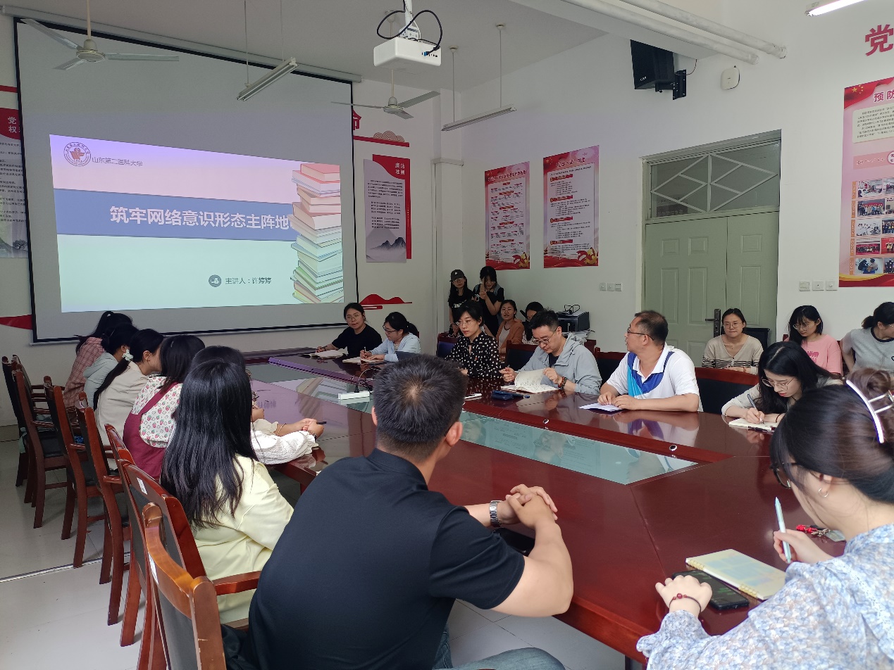党委副书记许婷婷副教授在科技楼B123会议室以《筑牢网络意识形态主阵地》为题讲党课,研究生党支部和研究生第二党支部全体师生党员参与学习。
