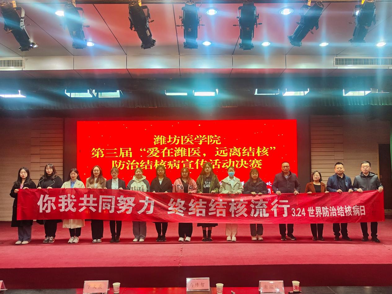 3月24日是第28个“世界防治结核病日”,为加强结核病防治的科普宣传,营造全校园参与结核病防治的良好氛围,由后勤管理处主办,missav 承办的missav 第三届“爱在潍医,防治结合”结核病防治宣传活动在图书馆演播厅举行。潍城区疾控中心结防科科长马传智、副科长卞文霞,校医院院长谢瑞柱担任本次活动的嘉宾评委,辅导员及学生200余人参加活动。