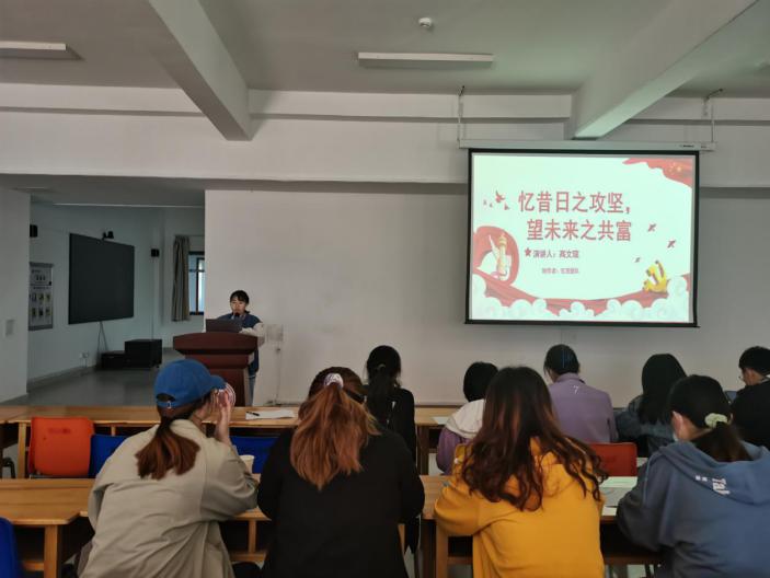 展演活动通过PPT讲解、微电影等形式展现同学们身边的扶贫故事,重温脱贫攻坚历史进程,分别讲述了潍坊昌乐县红河镇的脱贫故事、用生命照亮扶贫路的黄文秀的扶贫事迹、乡村振兴“领头雁”王传喜的扶贫事迹等;活动还将国家的扶贫政策、党的扶贫精神穿插其中,号召青年学子增强使命担当,积极投身新时代中国特色社会主义事业建设中。