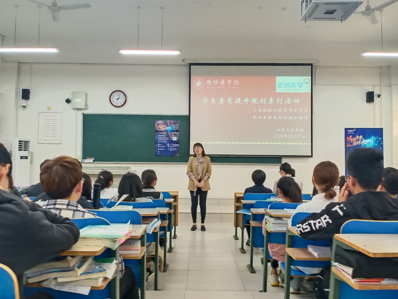 为深入开展党史学习教育,missav 举办了“我为师生办实事”——学生素质提升规划系列活动,5月11日,邀请金域医学检验有限公司在教学楼D408教室举办专场招聘会和职业生涯规划、就业指导交流。食品检验与统计专业学工办、相关教研室老师及卫生检验与检疫专业全体在校生积极参与。