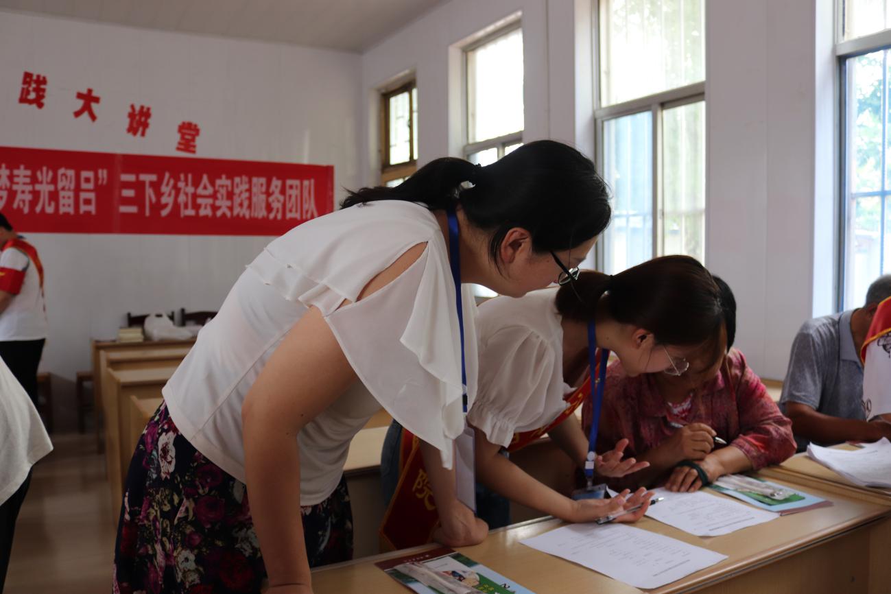 适逢潍坊医学院建校70周年,团队还积极向当地村民介绍学校的历史及发展,向家有学生的村民发放了潍坊医学院招生简章。