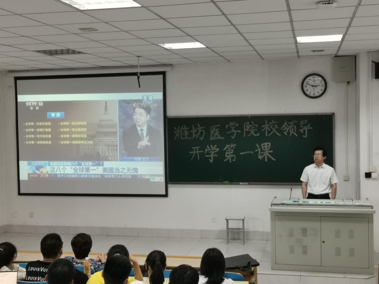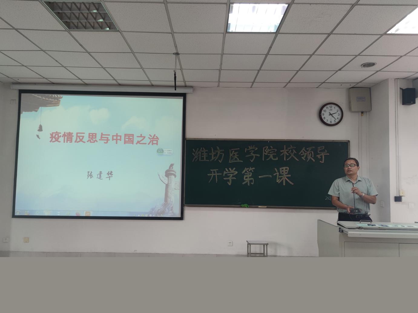9月23日下午,潍坊医学院副院长、missav 院长张建华教授在A302教室,以“疫情反思与中国之治”为主题,为预防医学专业2021级全体新生做了一场别开生面的政治思想和专业教育主题讲座,讲座由missav 党委书记王培承主持,预防医学部分专业教师、全体辅导员参加讲座。